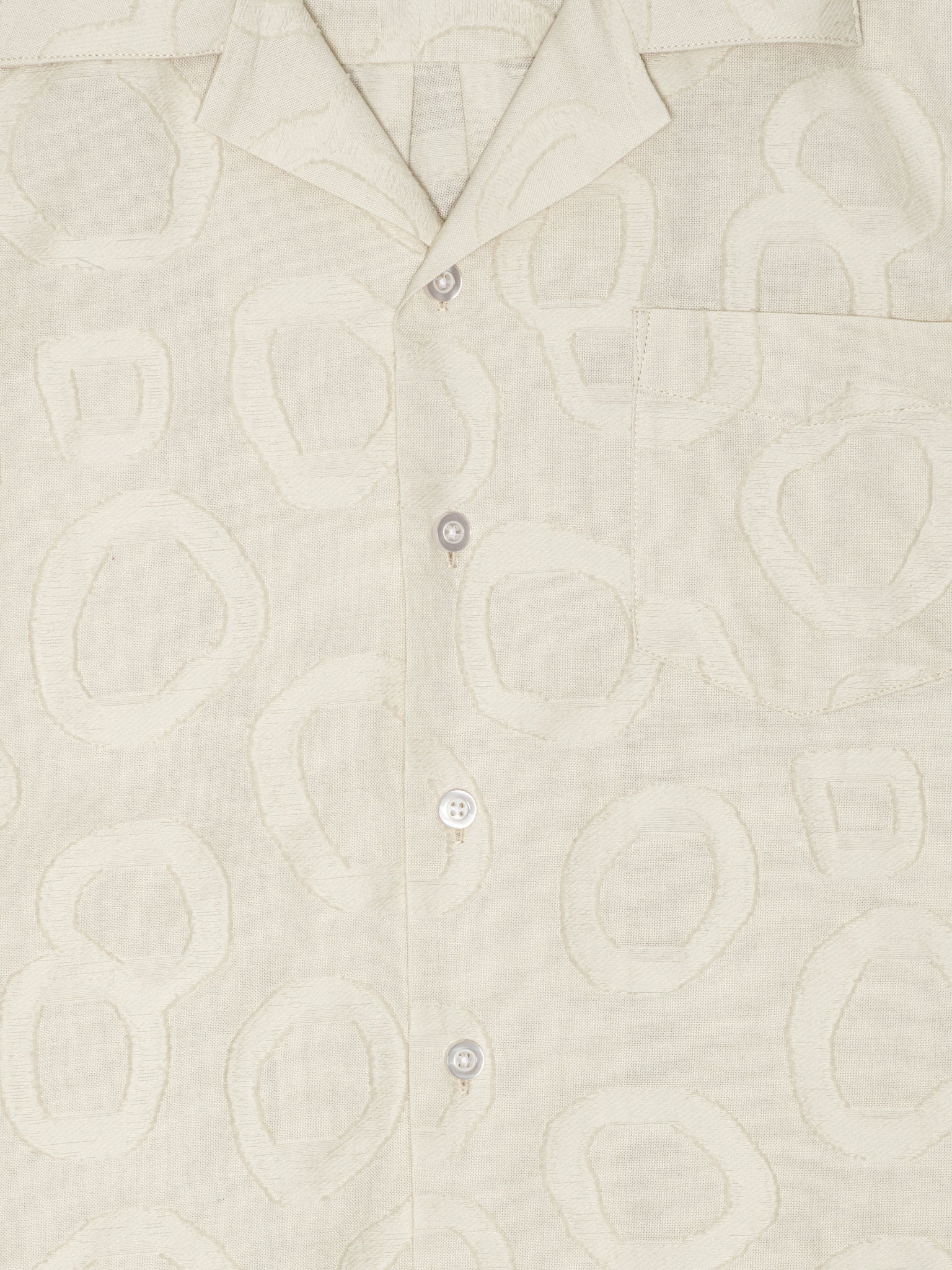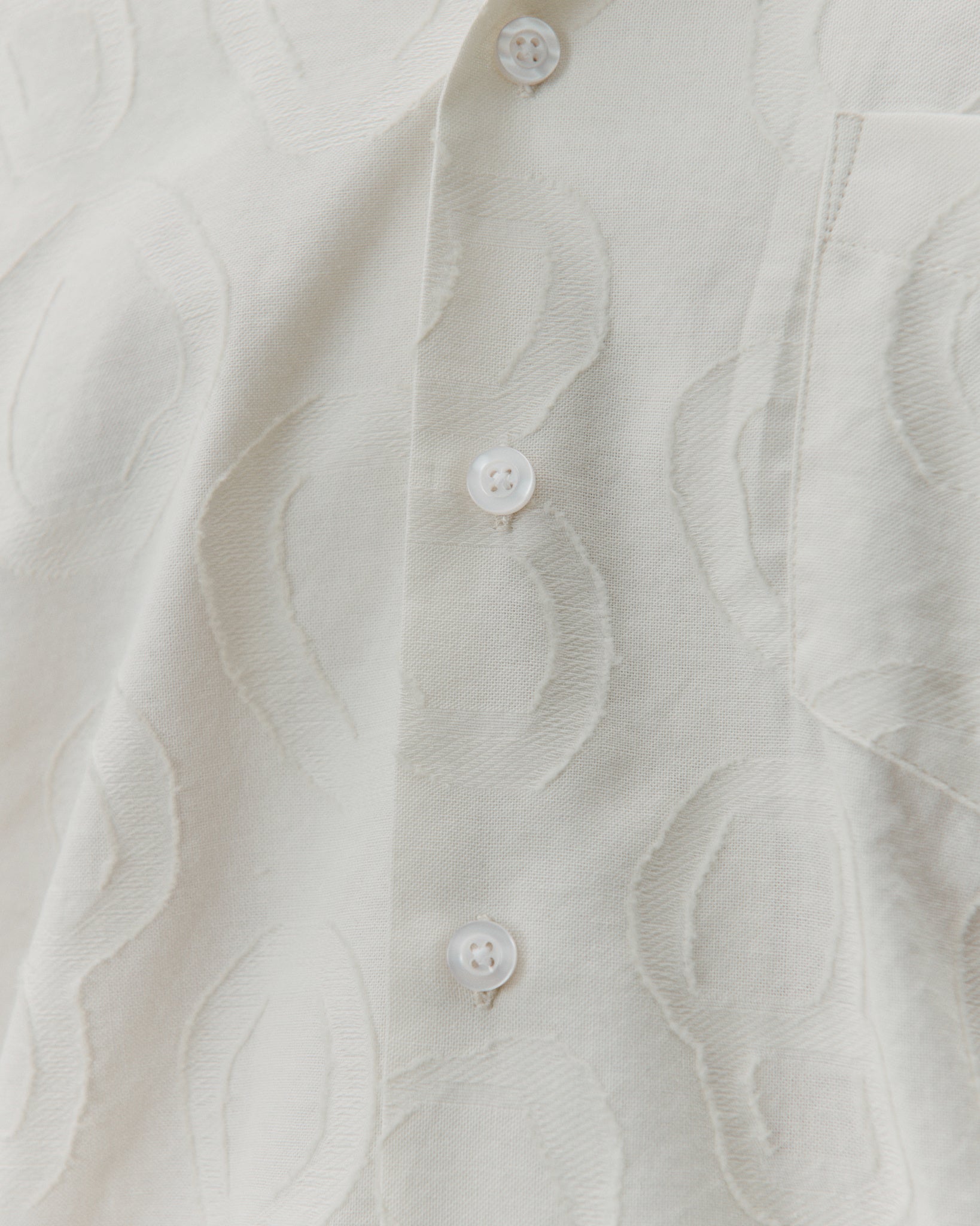 Cut from crispy light jacquard weave. The Cave shirt is our classic short sleeve shirt with camp collar and a chest pocket.