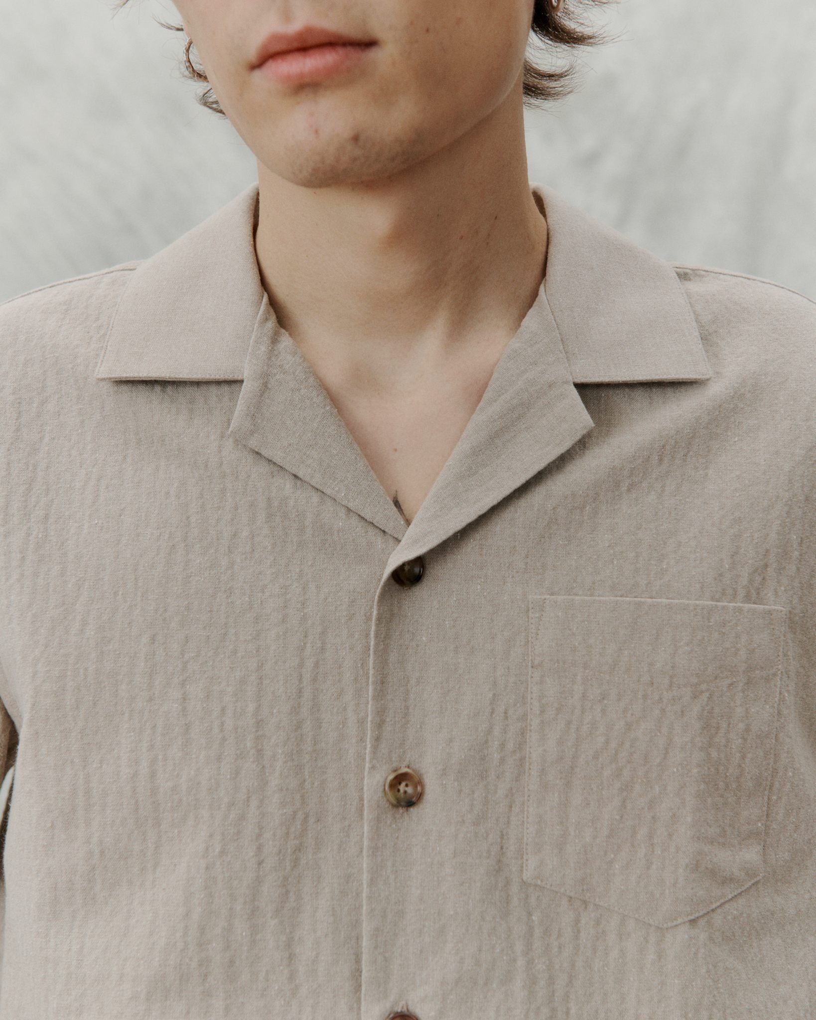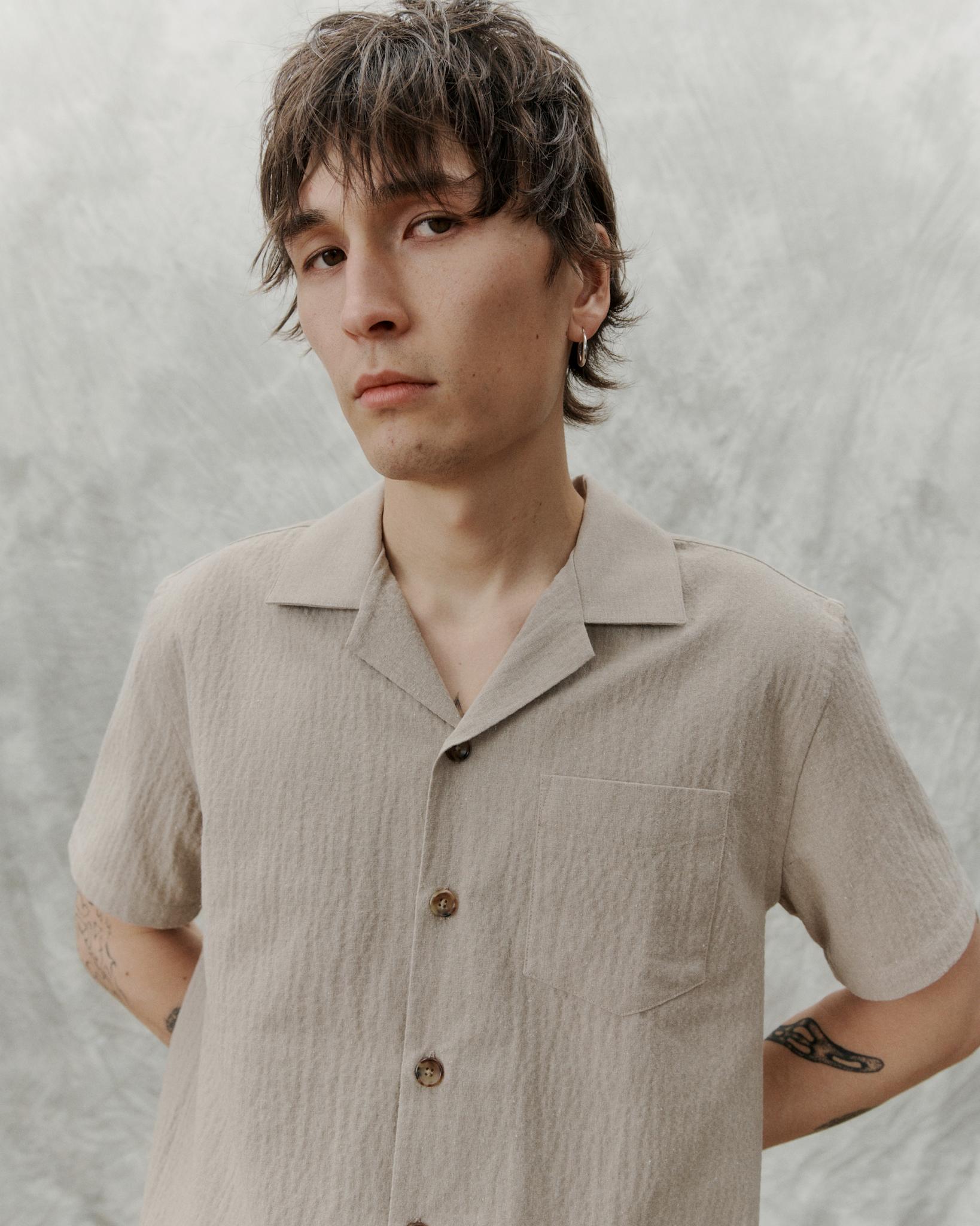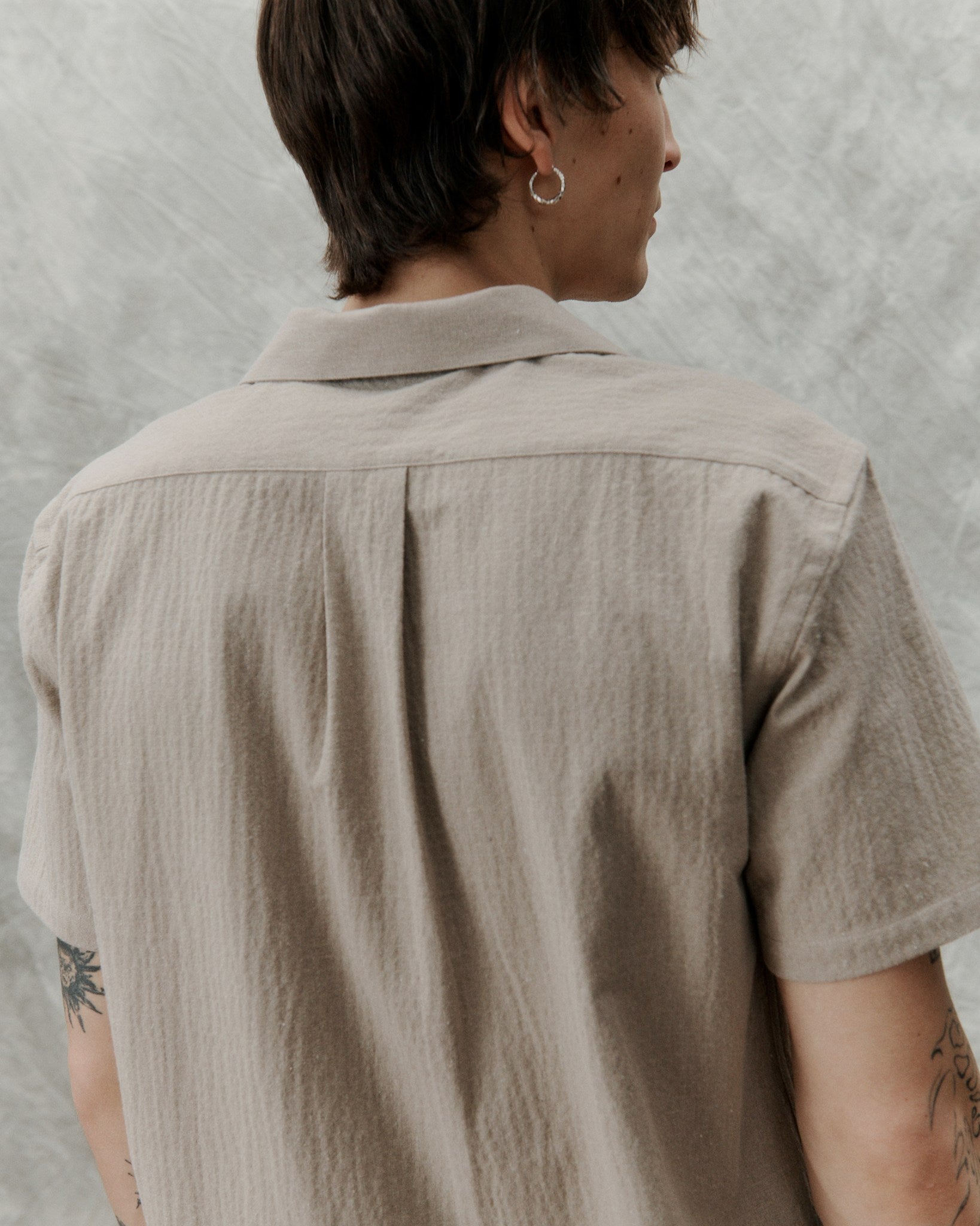 Cut from seersucker weave. The Cave shirt is our classic short sleeve shirt with camp collar and a chest pocket.