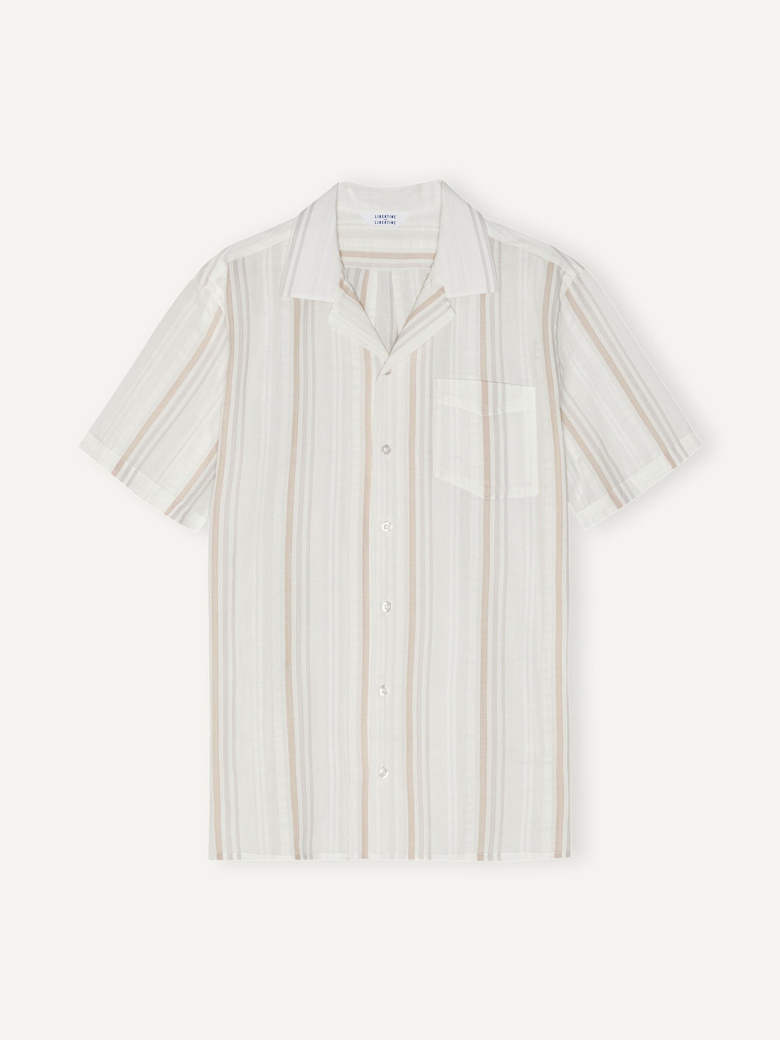 Cut from gauge jacquard weave. The Cave shirt is our classic short sleeve shirt with camp collar and a chest pocket.