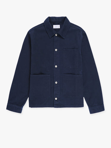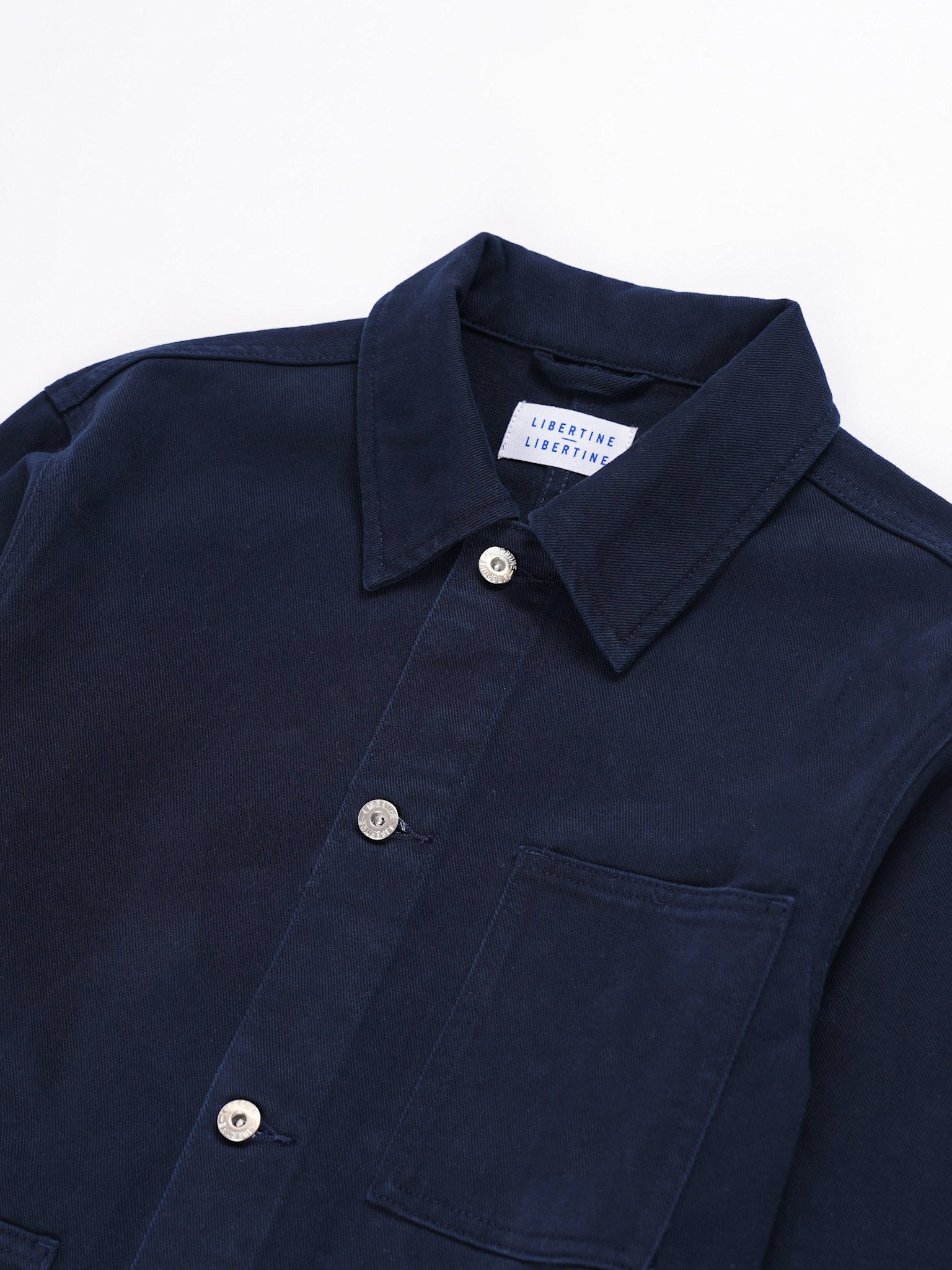 A work inspired jacket made from a soft, heavy twill weave fabric. The Jacket features jeans button closure & patch pockets.