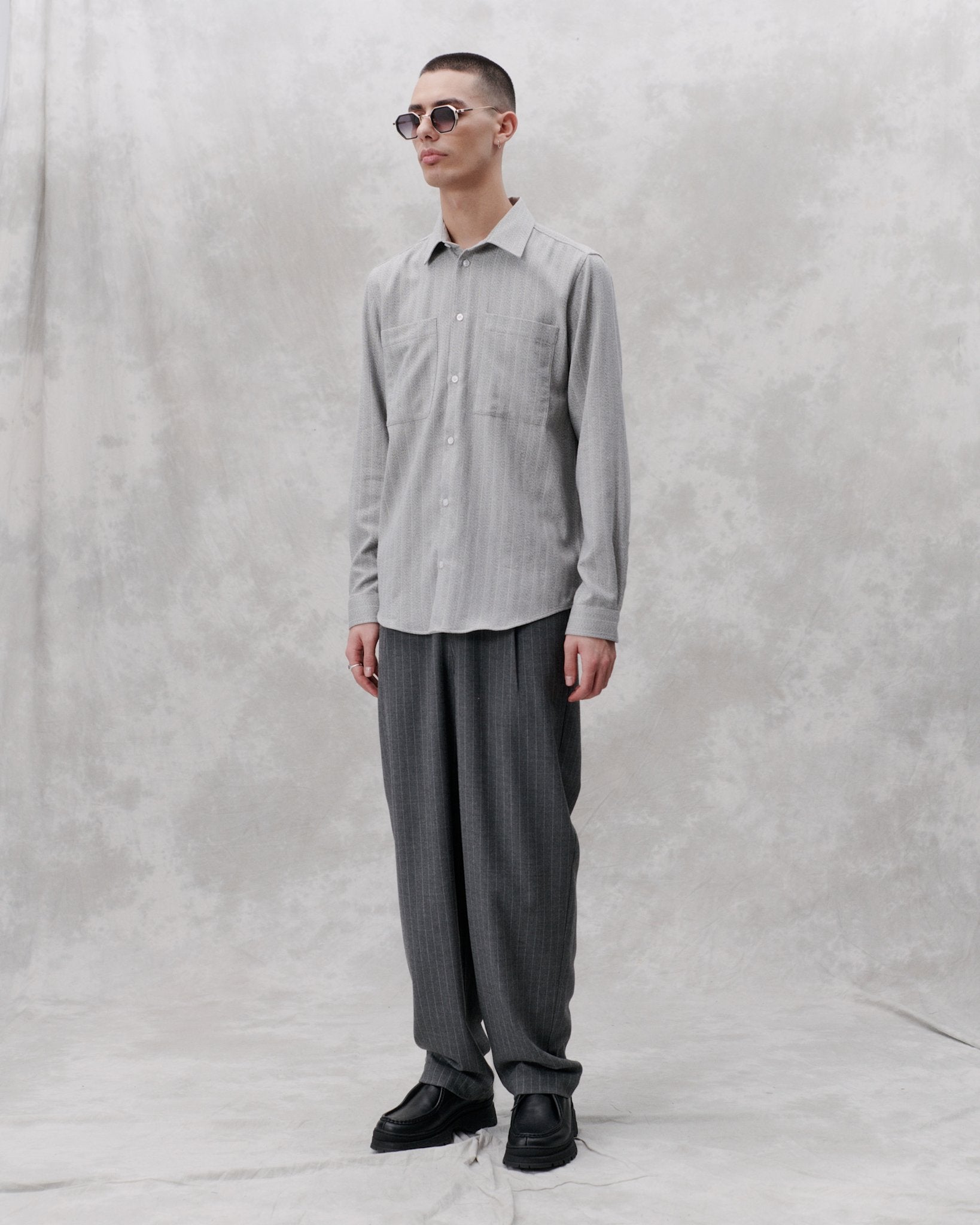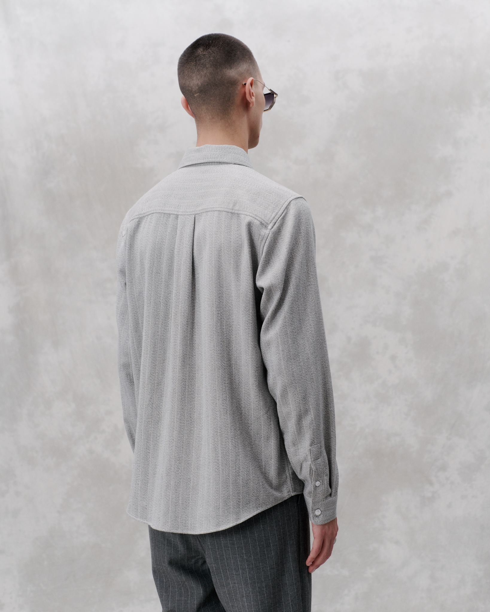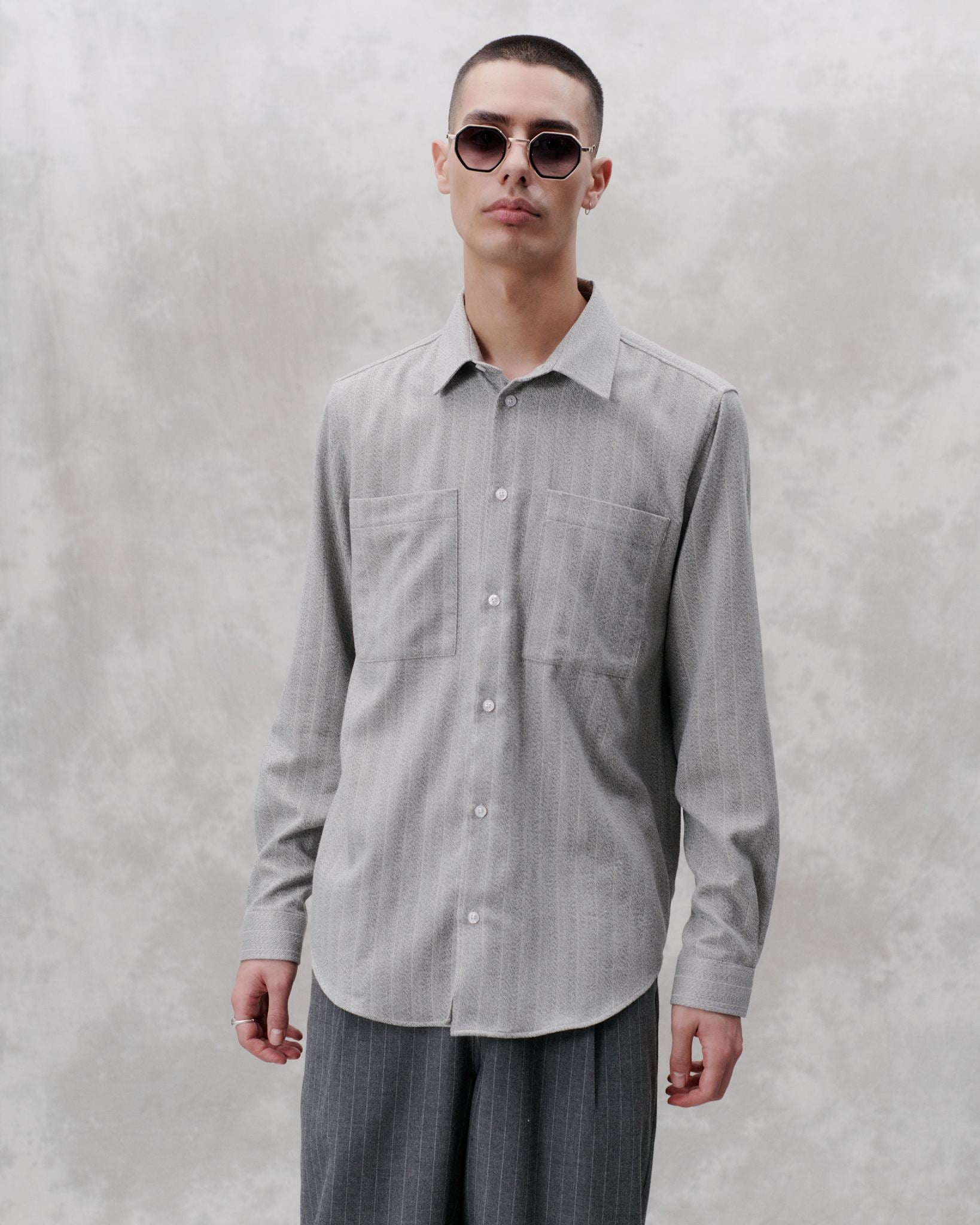 Cut from an Italian herringbone weave in mixed material. The Canyon shirt features a regular fit, classic two-pocket shirt with straight point collar and slightly curved hemline.