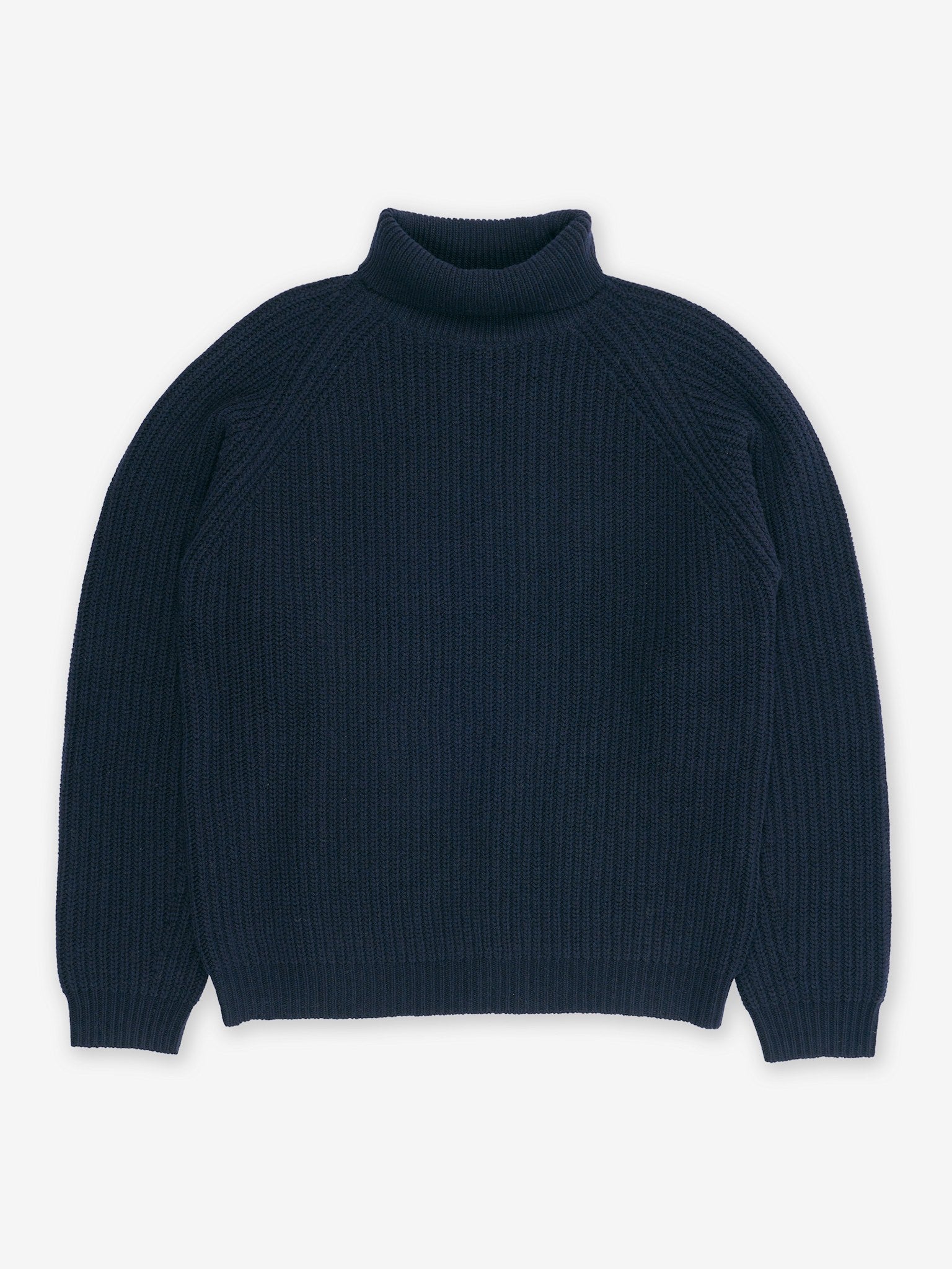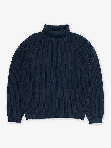 Session is a 5 GG half stitch knitted roll neck jumper made from soft wool. It comes in a relaxed fit with raglan sleeves and one by one ribbed neck and sleeves.