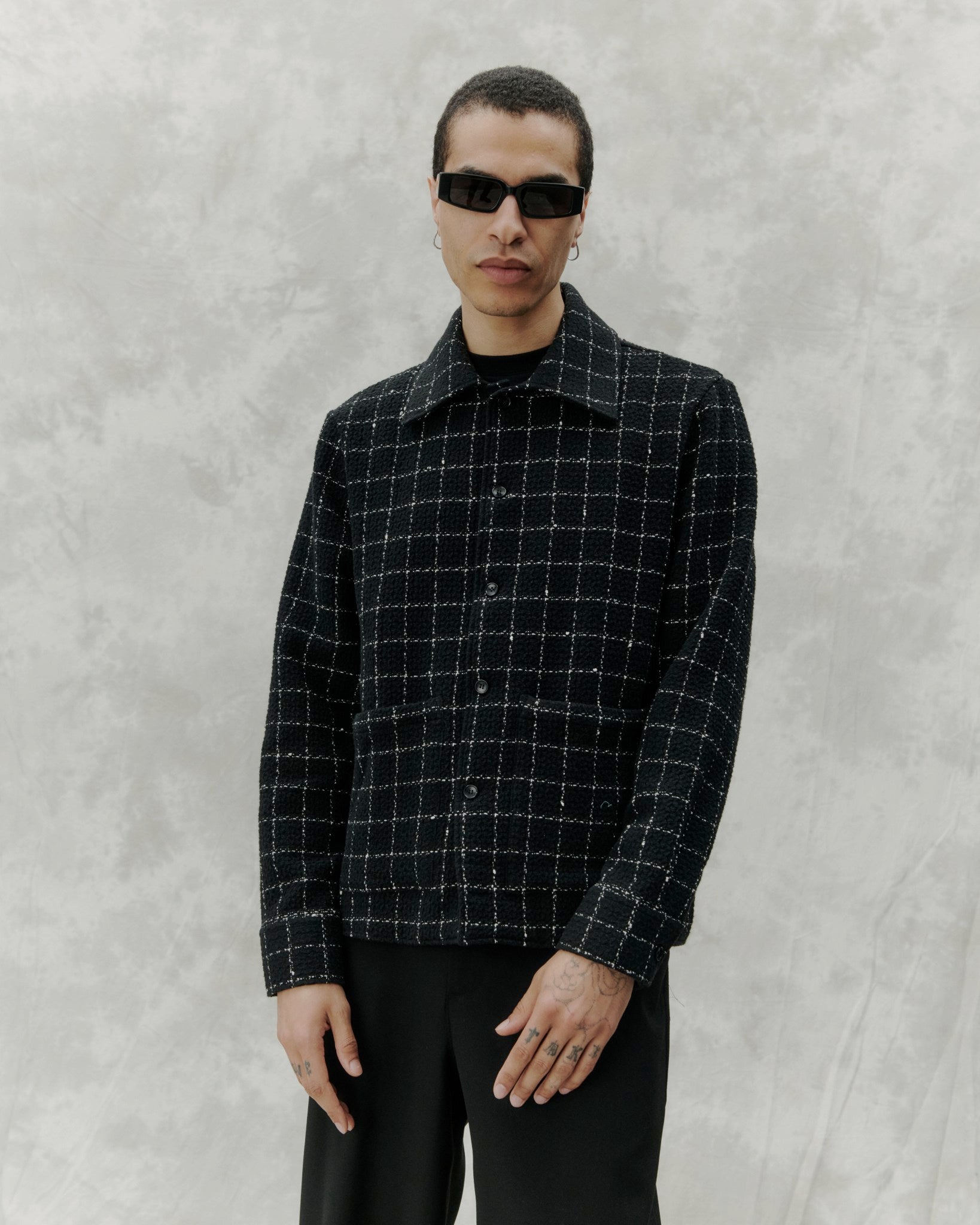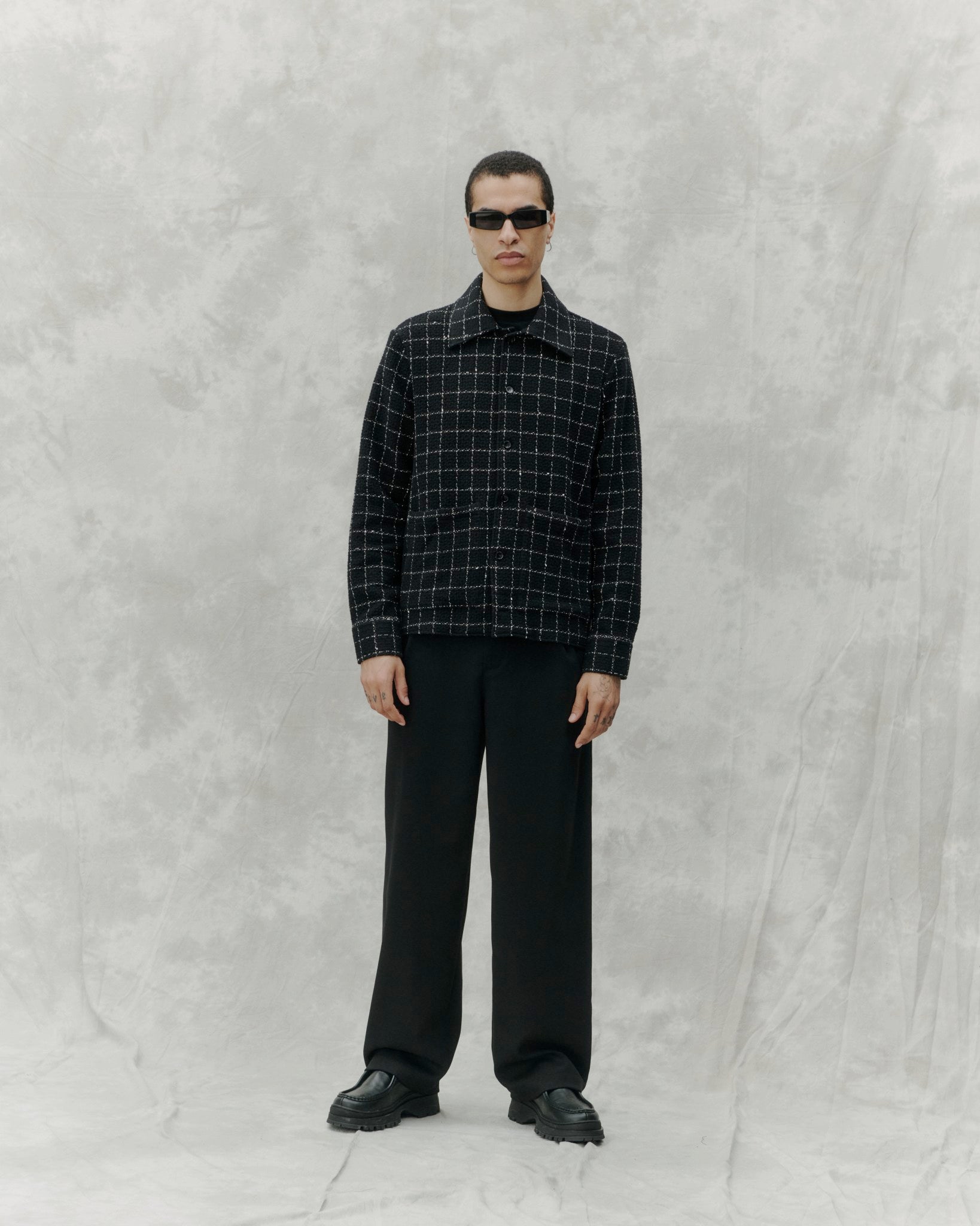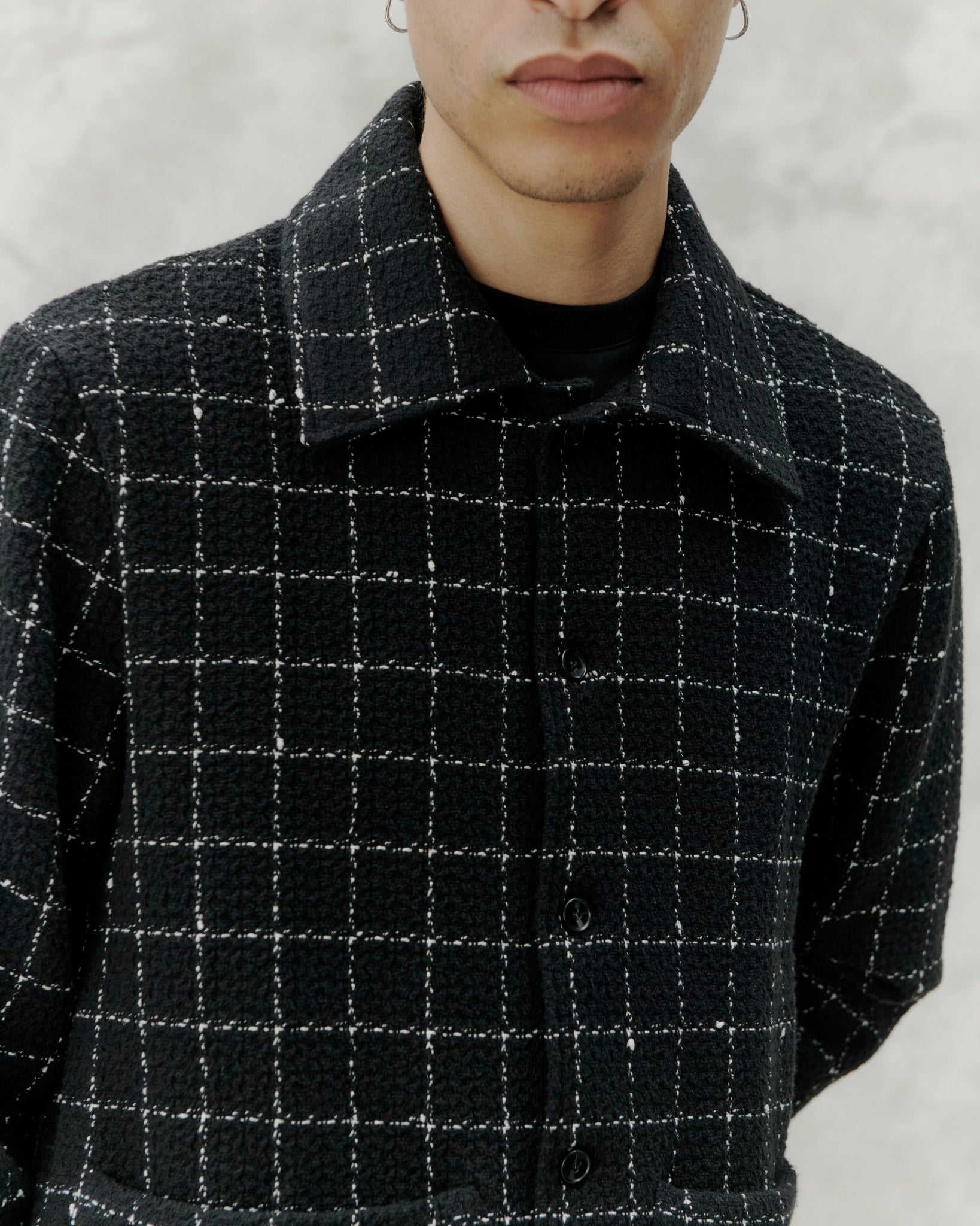 Contemporary tailoring for versatile use. The Spider jacket is a new seasonal style created as an alternative to the classic blazer. The Spider jacket features an oversized collar, drop in patch pockets and a relaxed fit, in a cut from a Buclé Weave. Please note that we have added double buttoning at the cuffs for a more narrow option of fit when closing the cuffs.