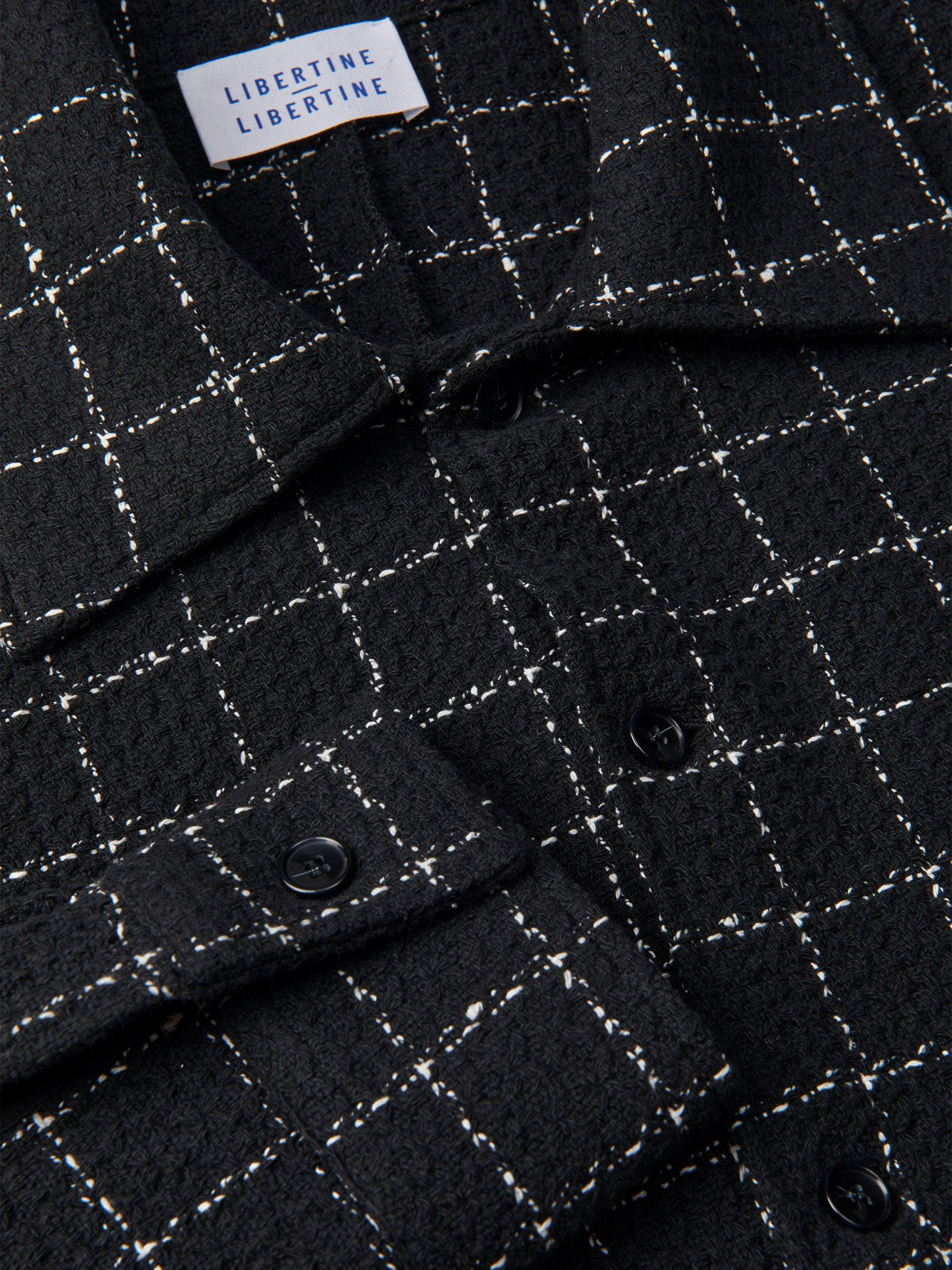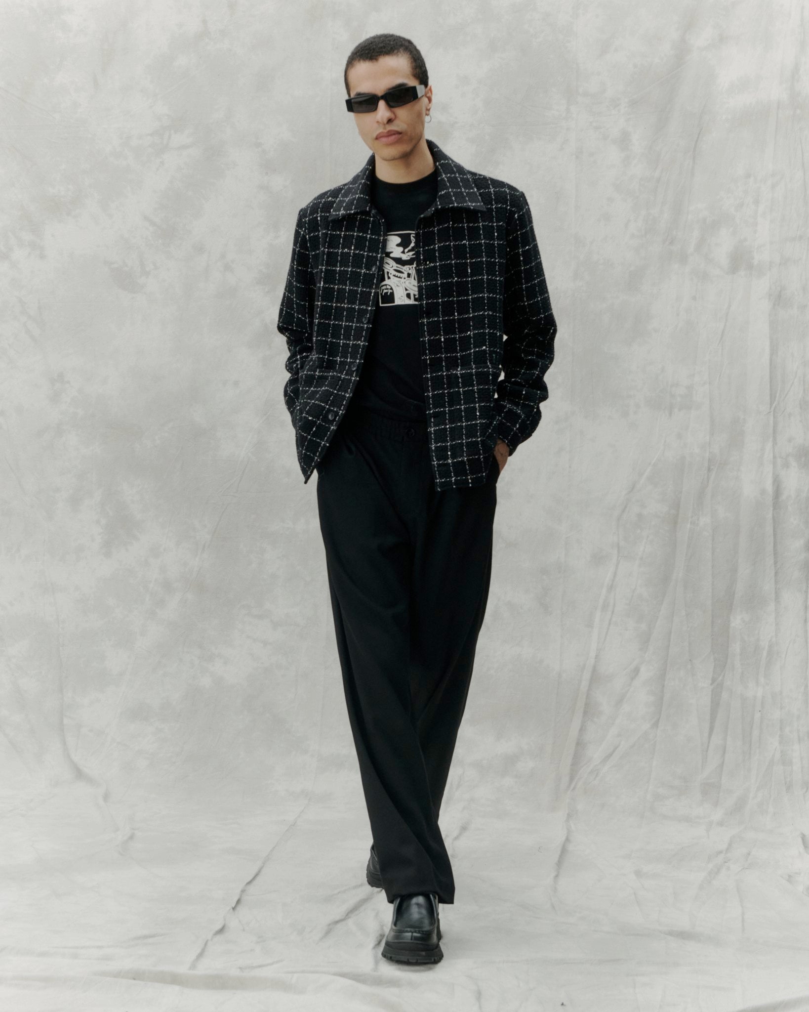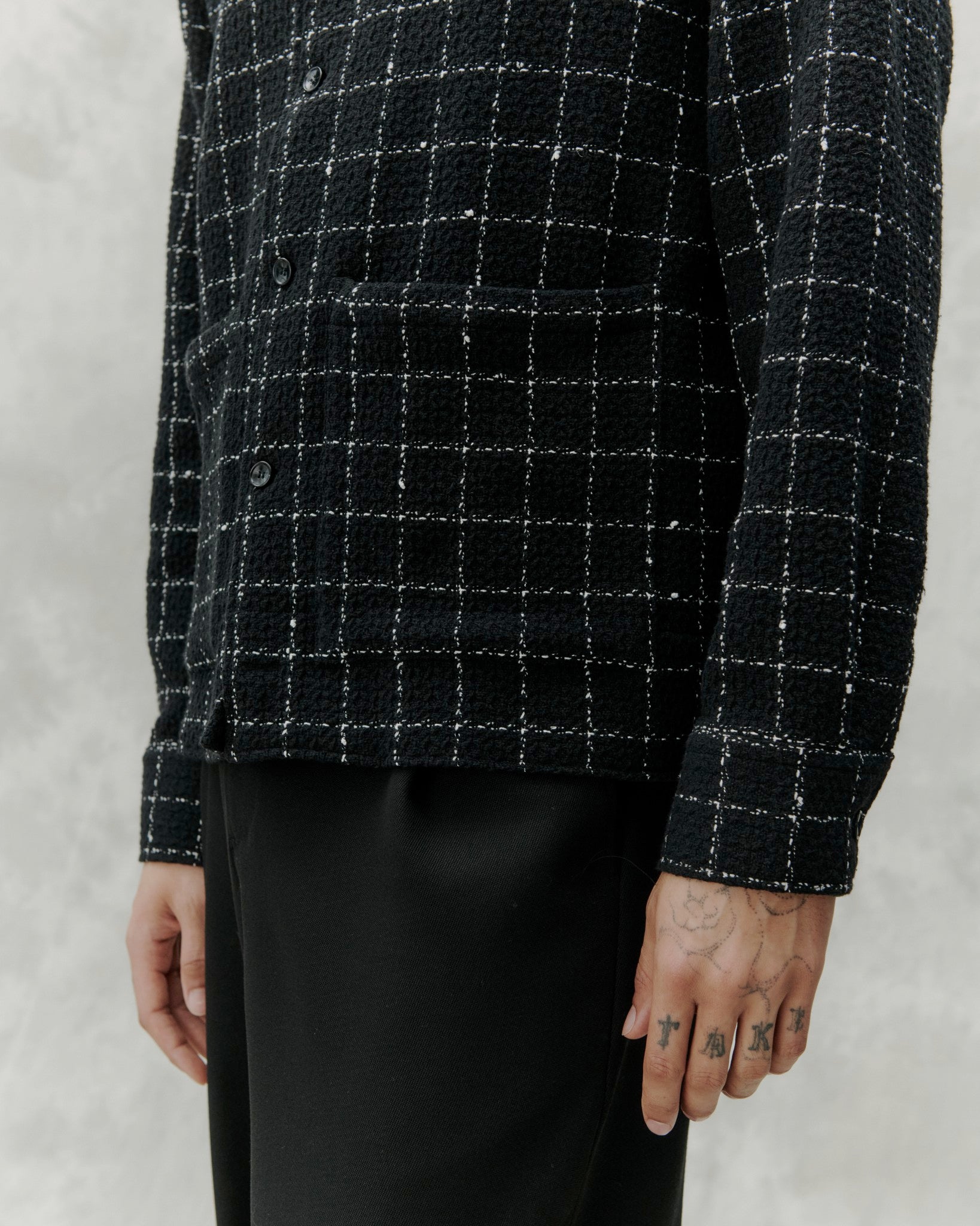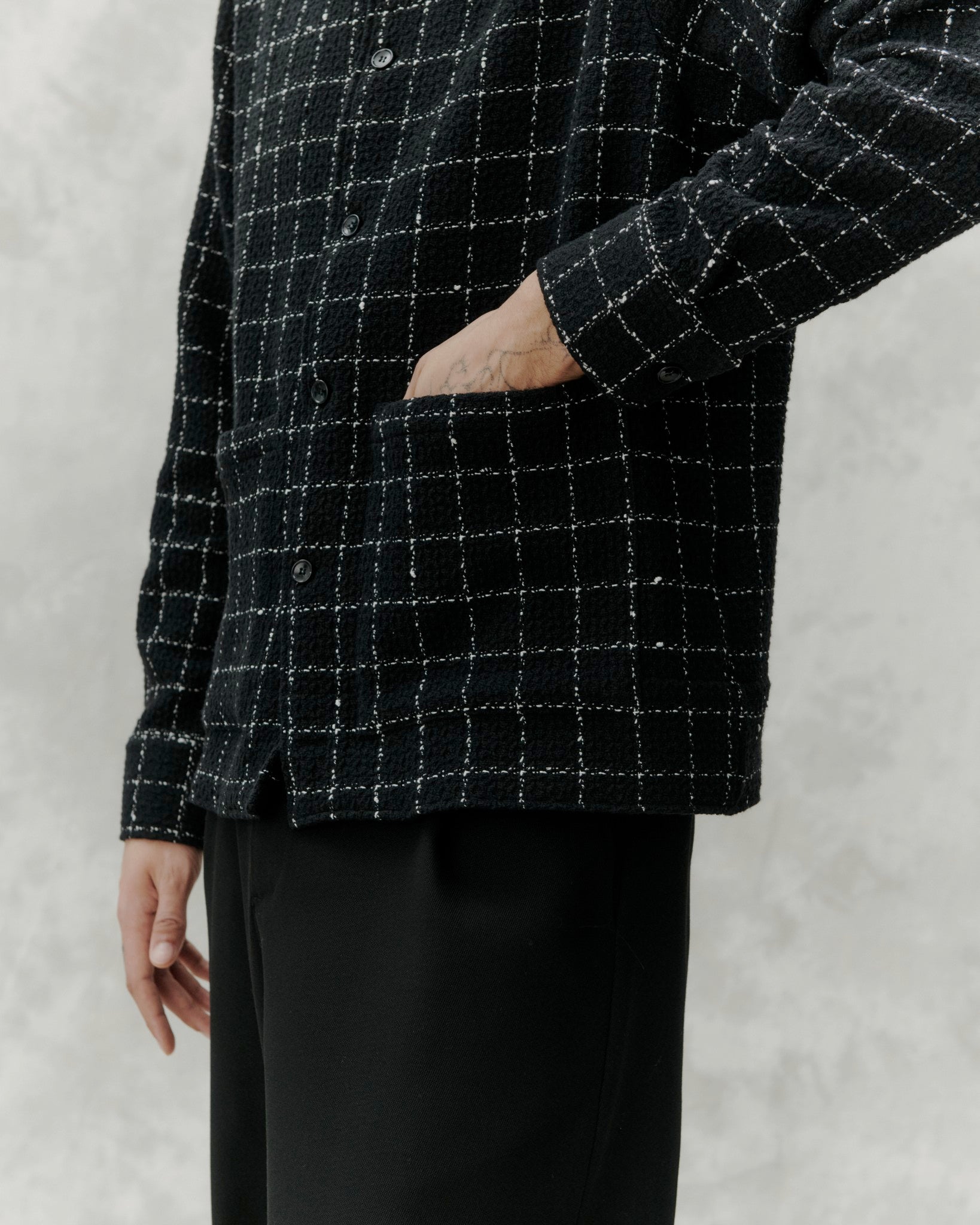 Contemporary tailoring for versatile use. The Spider jacket is a new seasonal style created as an alternative to the classic blazer. The Spider jacket features an oversized collar, drop in patch pockets and a relaxed fit, in a cut from a Buclé Weave. Please note that we have added double buttoning at the cuffs for a more narrow option of fit when closing the cuffs.