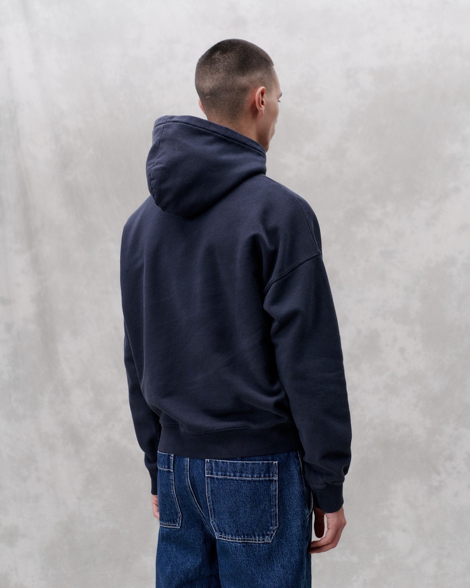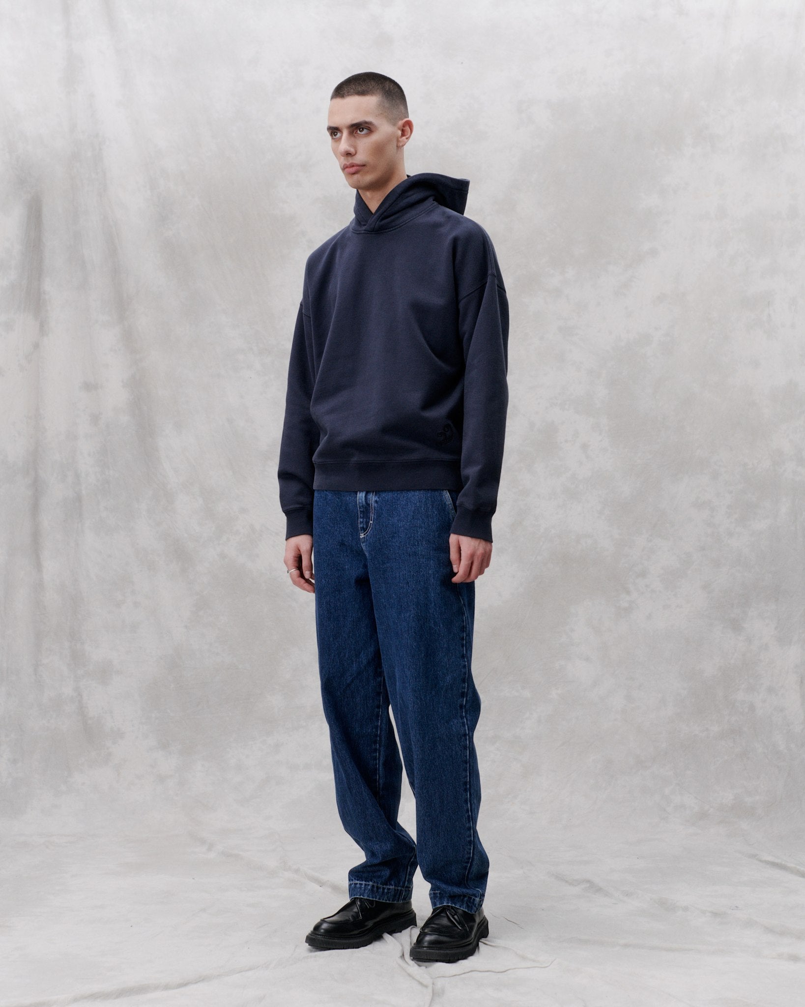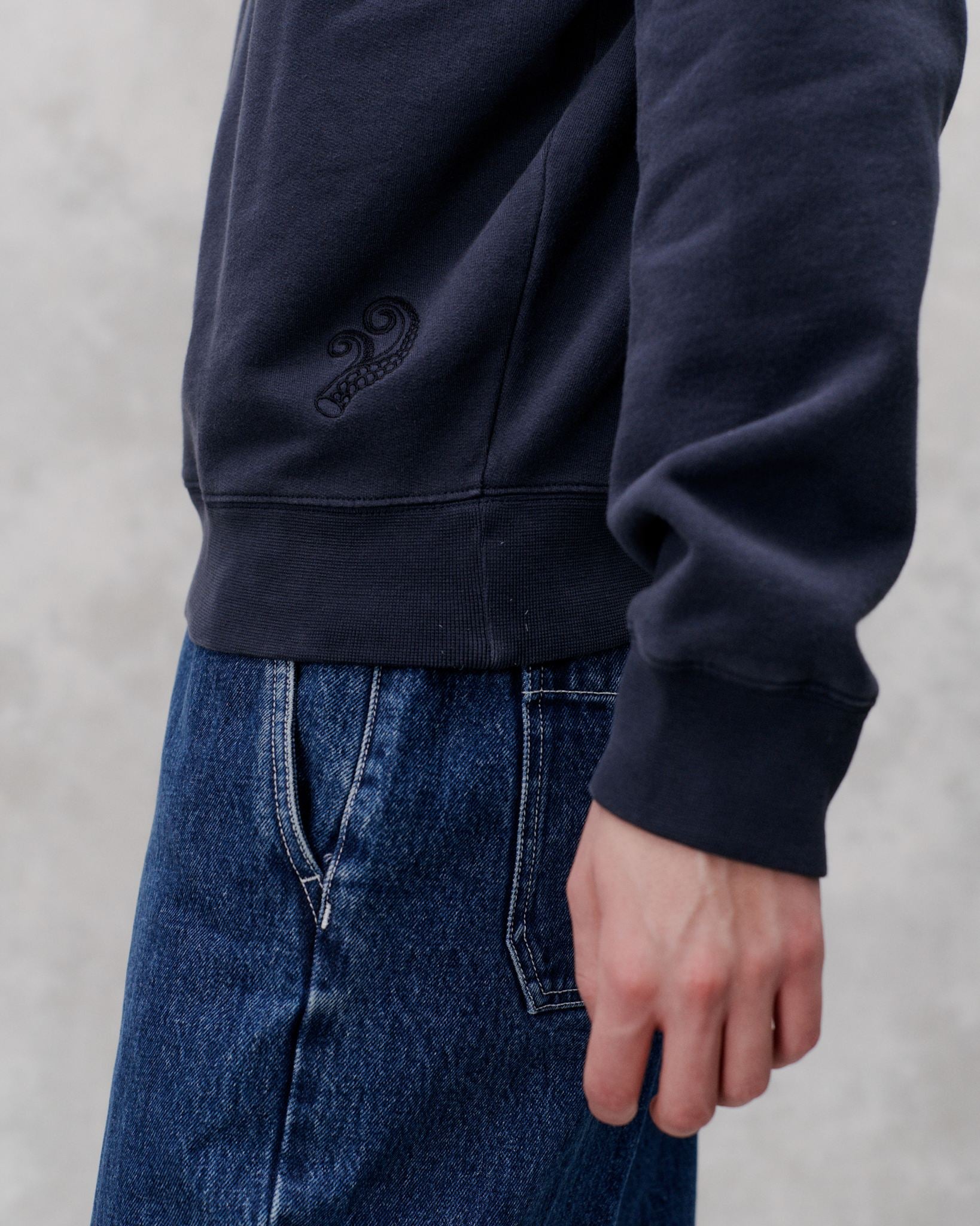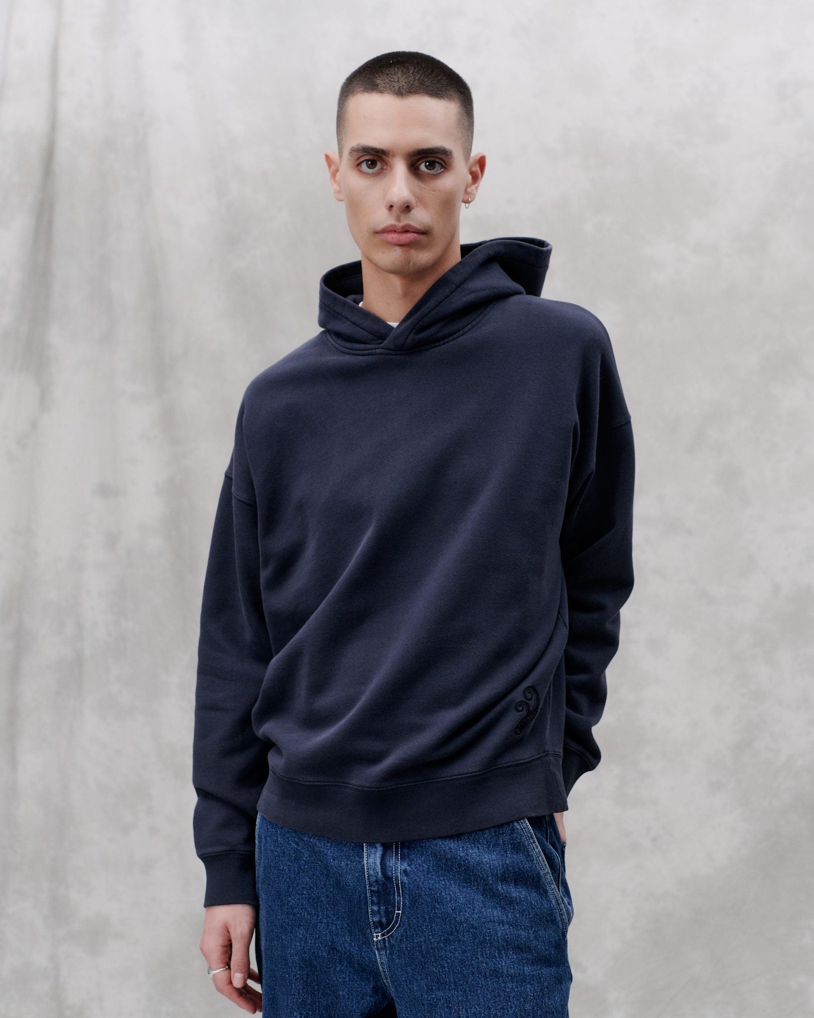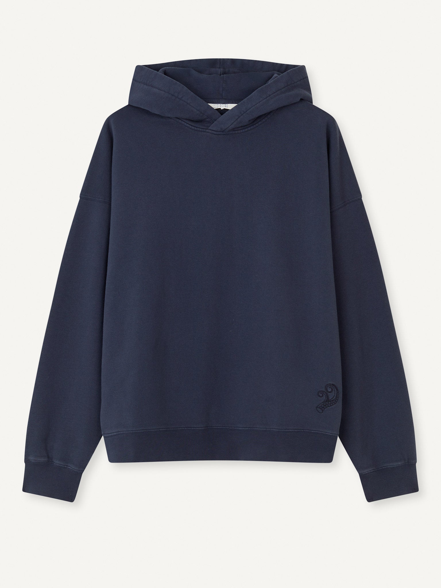 State hoodie is based on the Topanga sweatshirt. It comes in a relaxed fit with hood, set-in sleeves and one by one ribbed cuffs, bottom hem and neck. Subtle pulpo embroidery for good vibes.