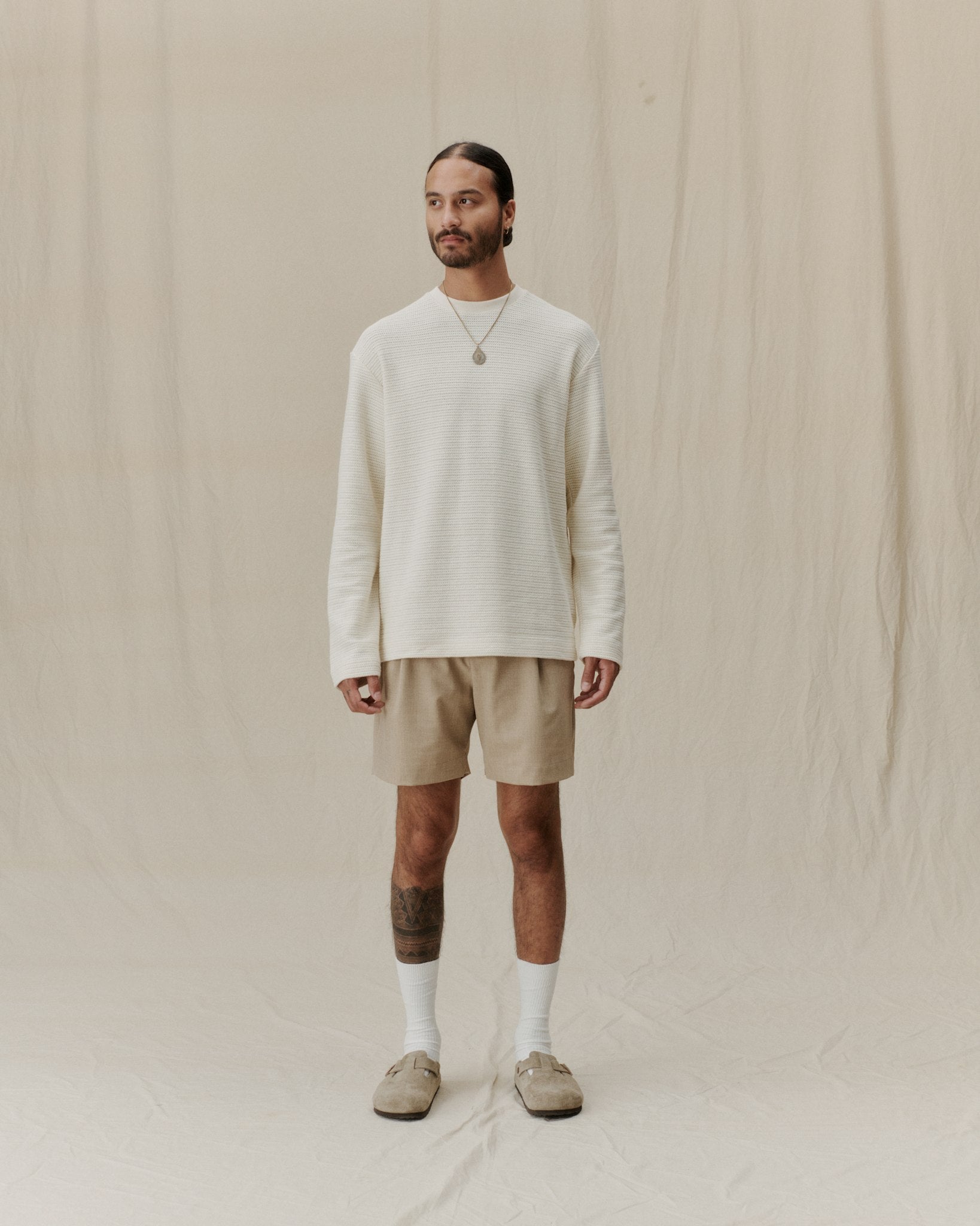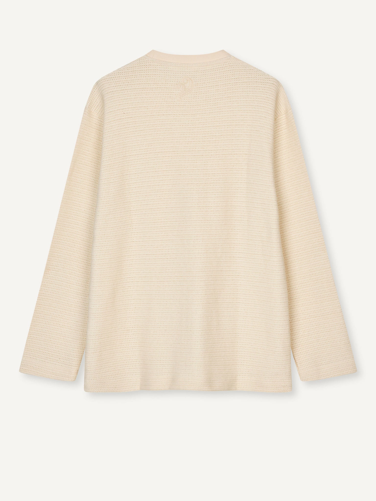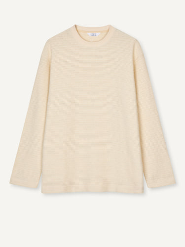 A structured knitted long sleeve t-shirt in 50% Organic Cotton and 50% Polyester