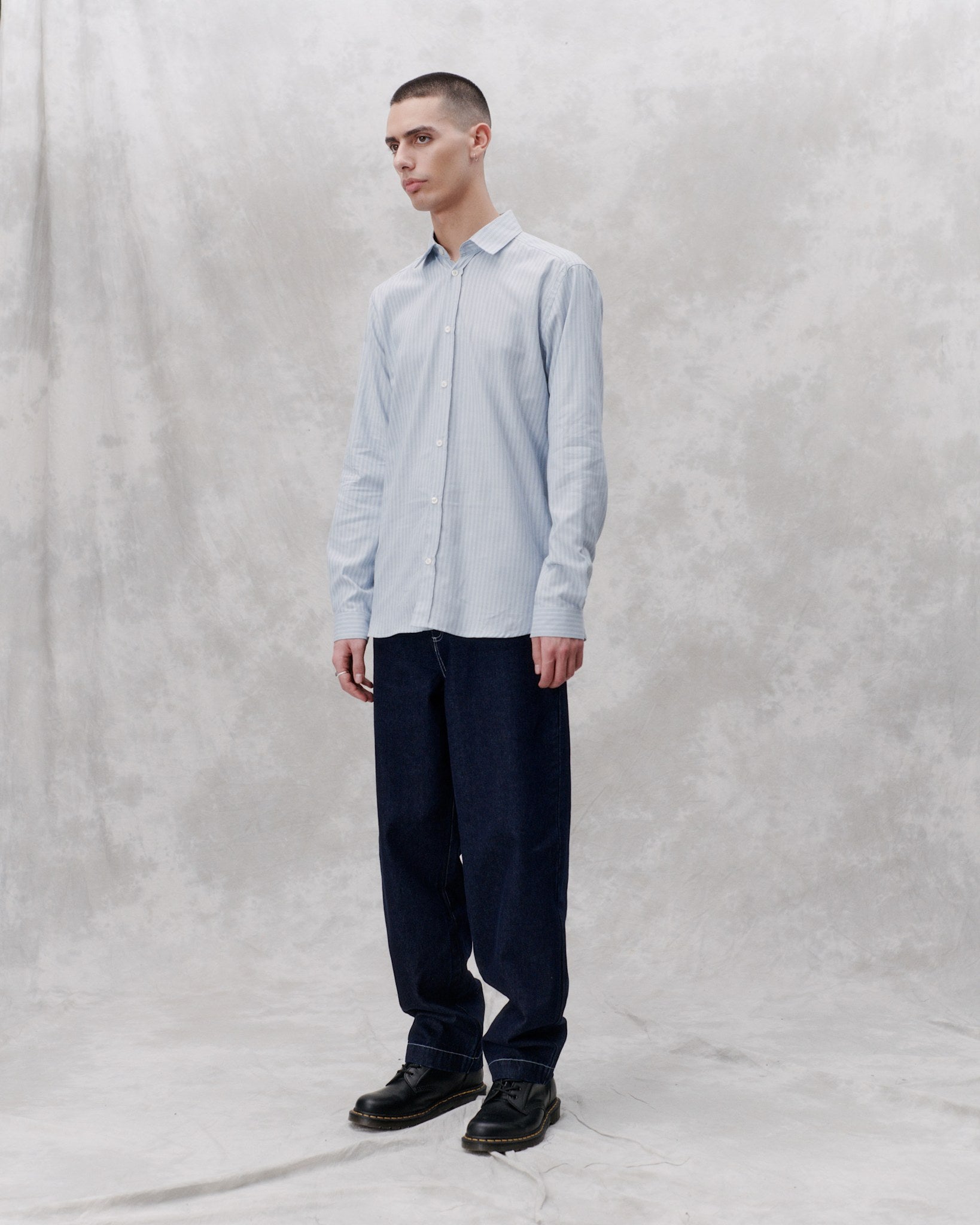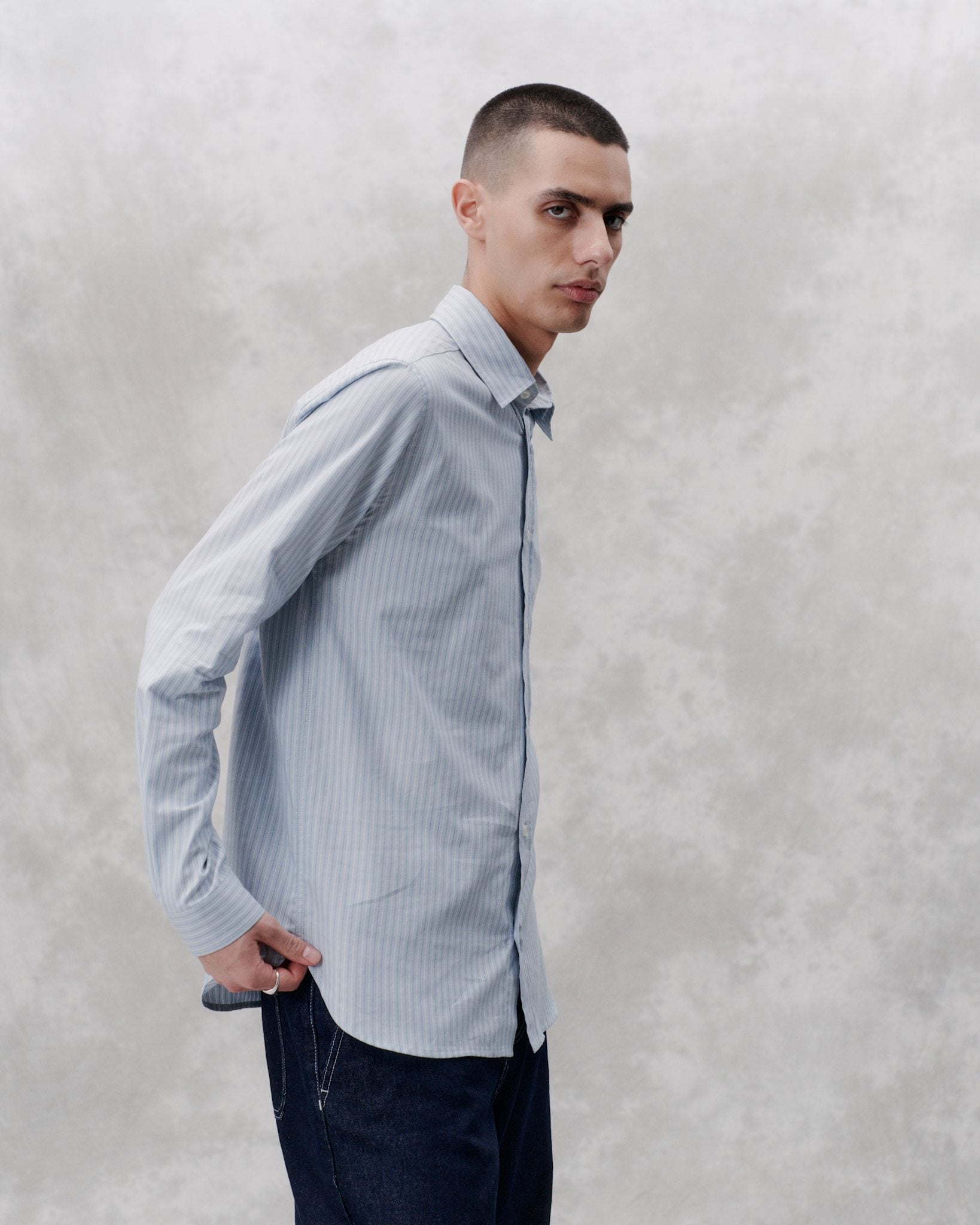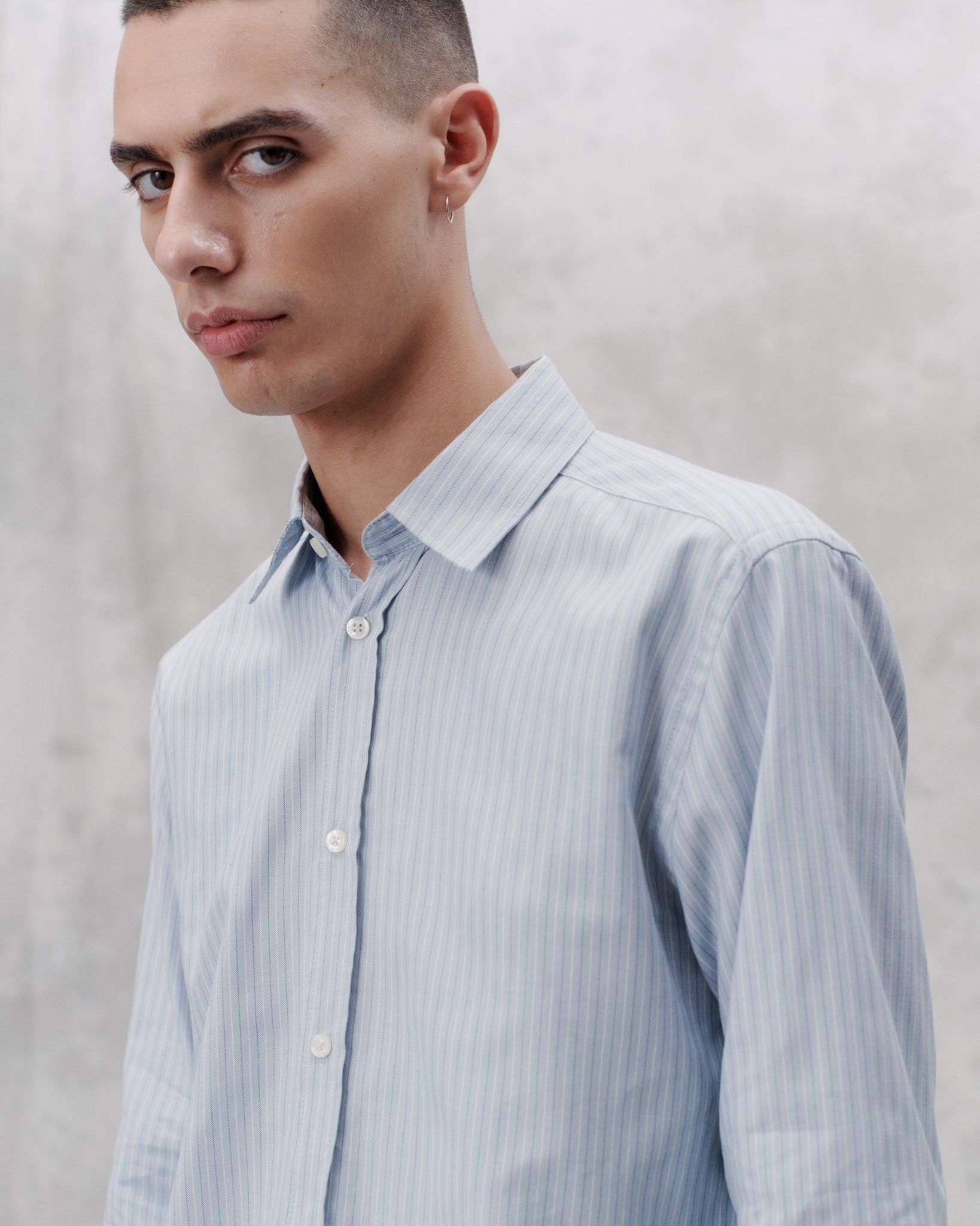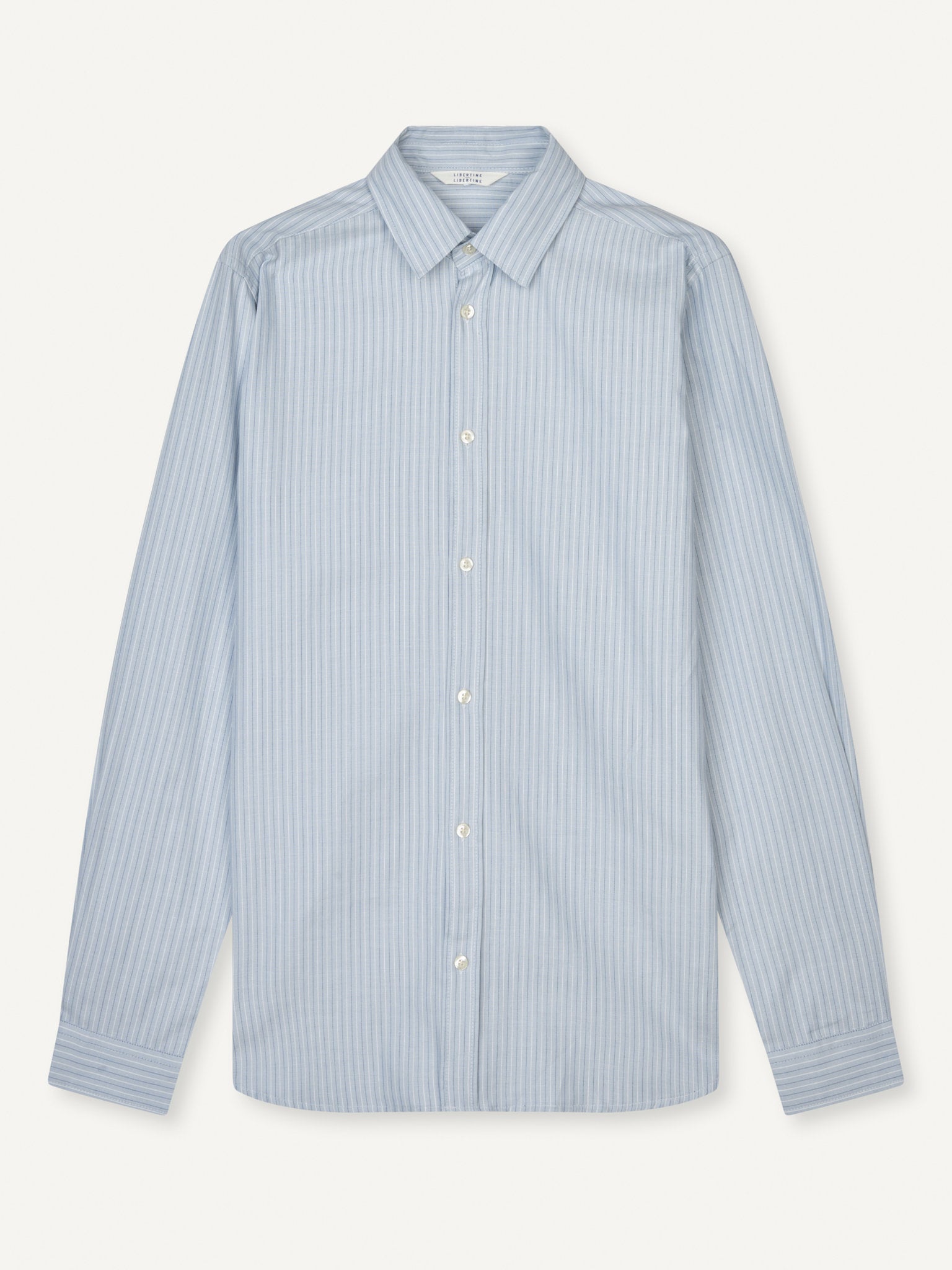 Cut from a soft and light twill weave with stripes. Regular fit, straight point collar and rounded hemline.