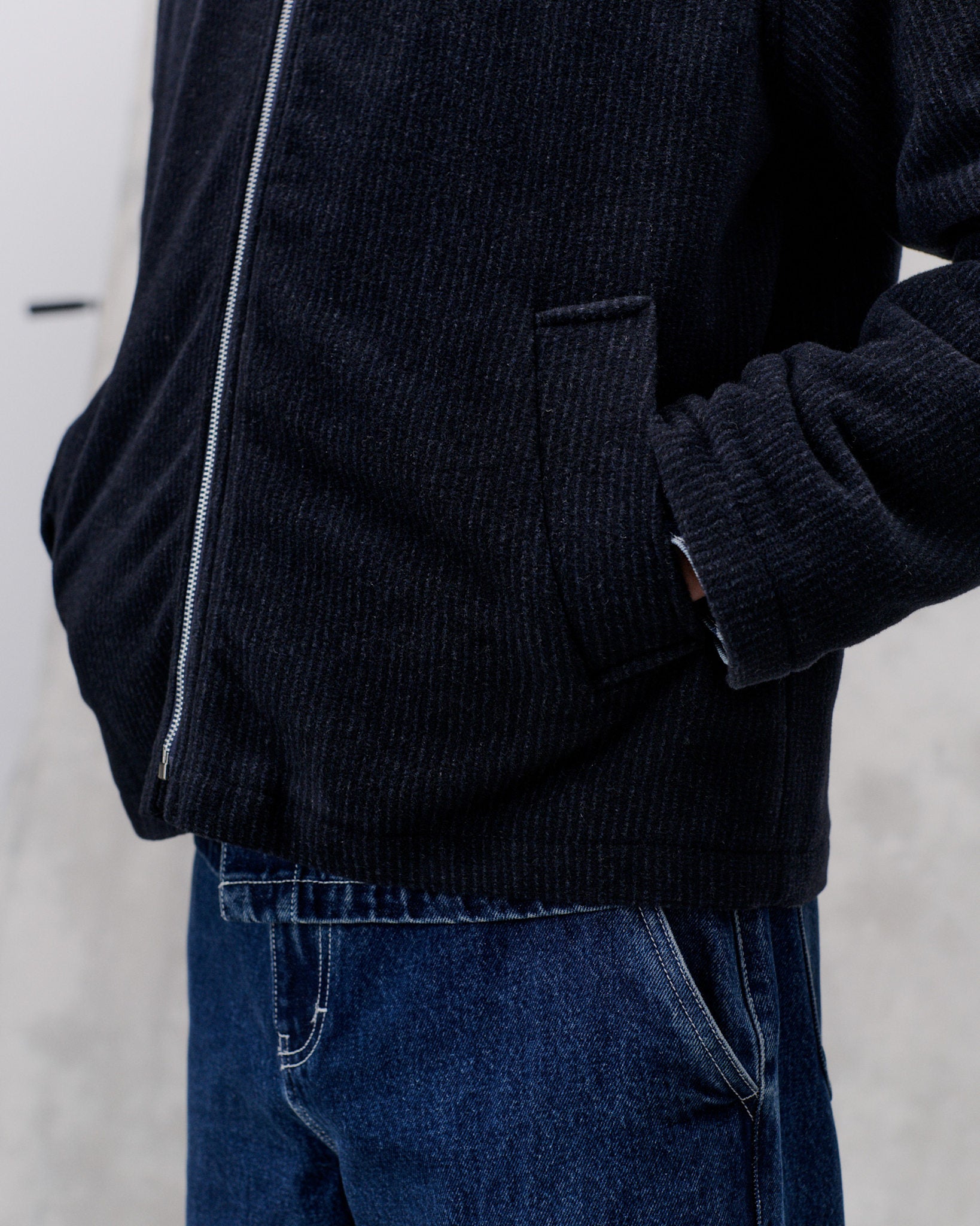 The Lunar jacket has dropped shoulder, wide collar, paspel pockets and zipper closure. Cut from high quality subtle Italian blend, fully lined and featured with MEIDA thermo insulation.