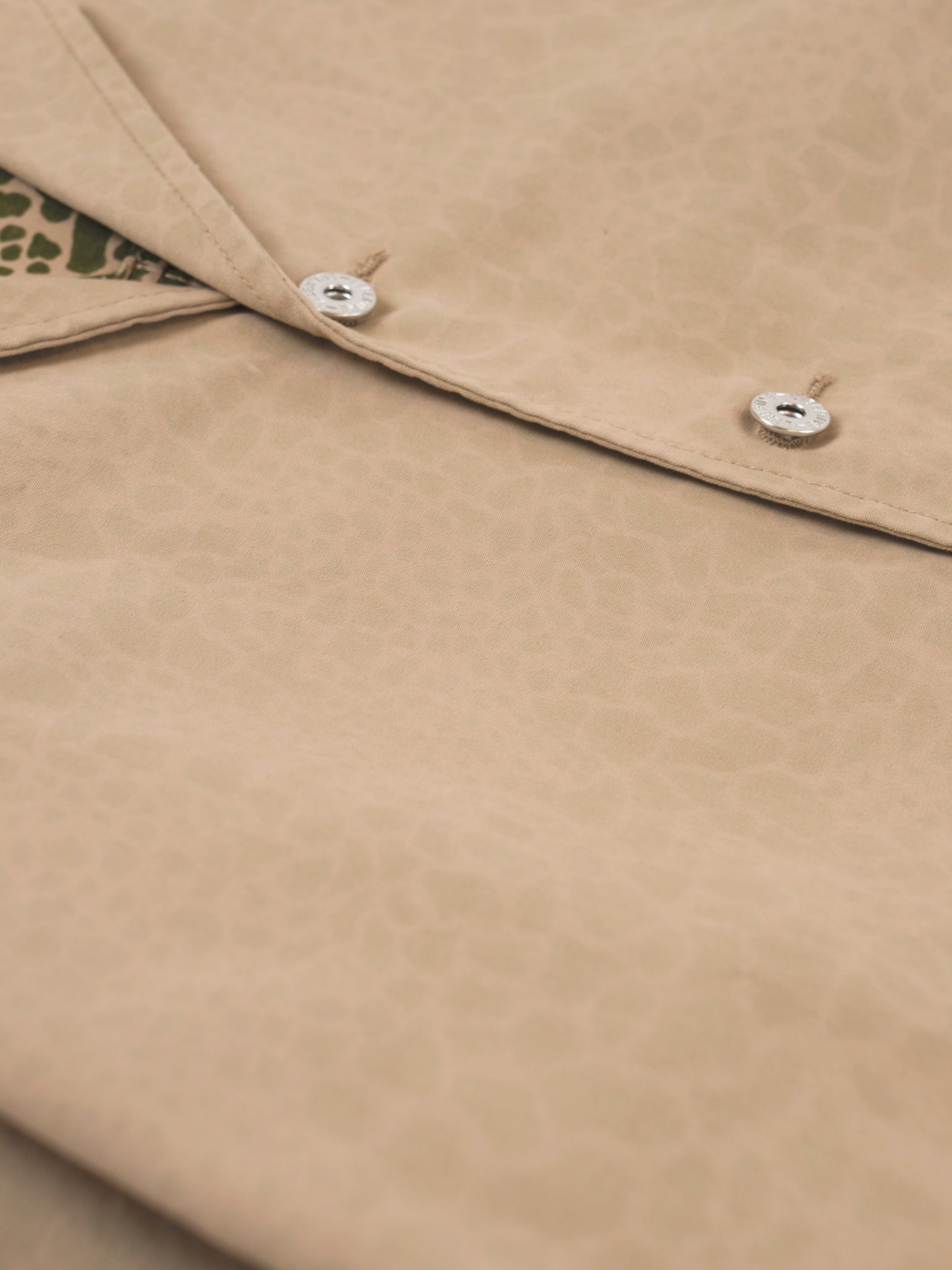 Cut from a dense paper touch, organic cotton fabric with our signature camo printed on the inside as a subtle detail.